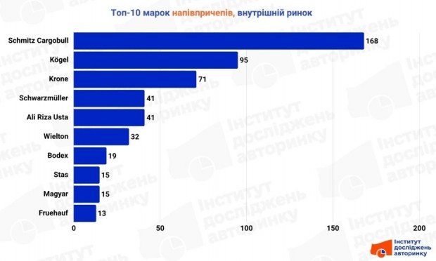 У переліку марок зберігається абсолютне лідерство німецької «великої трійки». Беззаперечним лідером є бренд, частка якого майже вдвічі перевищує показники найближчого конкурента. Також на внутрішньому ринку стабільно присутні турецькі та польські виробники спецтехніки, особливо в сегментах цистерн та напівпричепів-самоскидів. Загалом, цей сегмент зараз виглядає як процес витіснення старого парку, який все частіше замінюється імпортними аналогами.