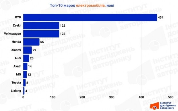 - BYD – беззаперечний та недосяжний фаворит. Торгова марка фактично сформувала половину всього ринку нових «електричок» за місяць.