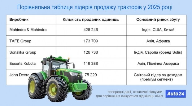 Згідно з попередніми розрахунками, лідером всесвітнього ринку за числом реалізованих у 2025 році тракторів стала індійська фірма Mahindra & Mahindra, але є певний аспект…