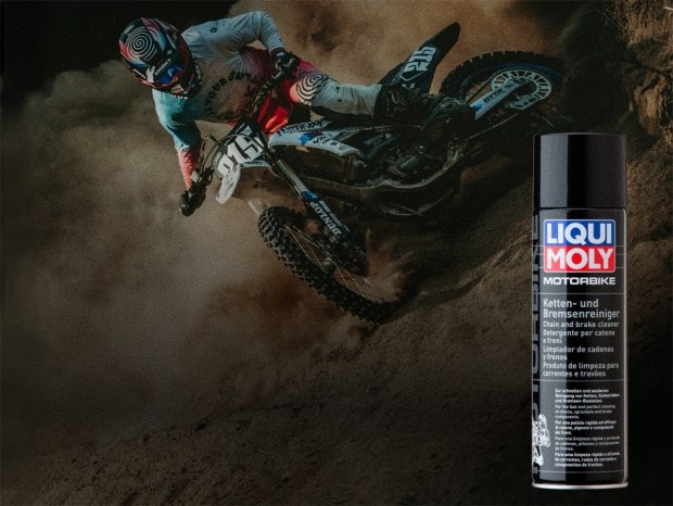 Першим кроком догляду має бути старанне очищення. Для цього чудово підійде спеціалізований очисник ланцюгів і гальм мотоциклів LIQUI MOLY Motorbike Ketten und Bremsenreiniger. Цей засіб оперативно розчиняє залишки старого мастила, усуває бруд і пил і не залишає маслянистої плівки. Завдяки потужному струменю аерозолю очисник потрапляє навіть у важкодоступні ділянки між роликами і пластинами ланцюга.