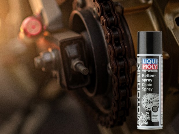 Після очищення ланцюг слід правильно змастити. Для цього призначене мастило для ланцюгів LIQUI MOLY Motorbike Chain Lube. Воно формує міцну захисну оболонку, яка значно скорочує тертя між компонентами ланцюга та оберігає метал від іржі.